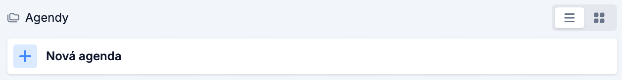Administrátoři vidí vždy všechny vytvořené agendy. Uživatelé s rolemi Správce, Editor, nebo Čtenář vidí agendu v případě, že jim k nim administrátor nastavil přístup.